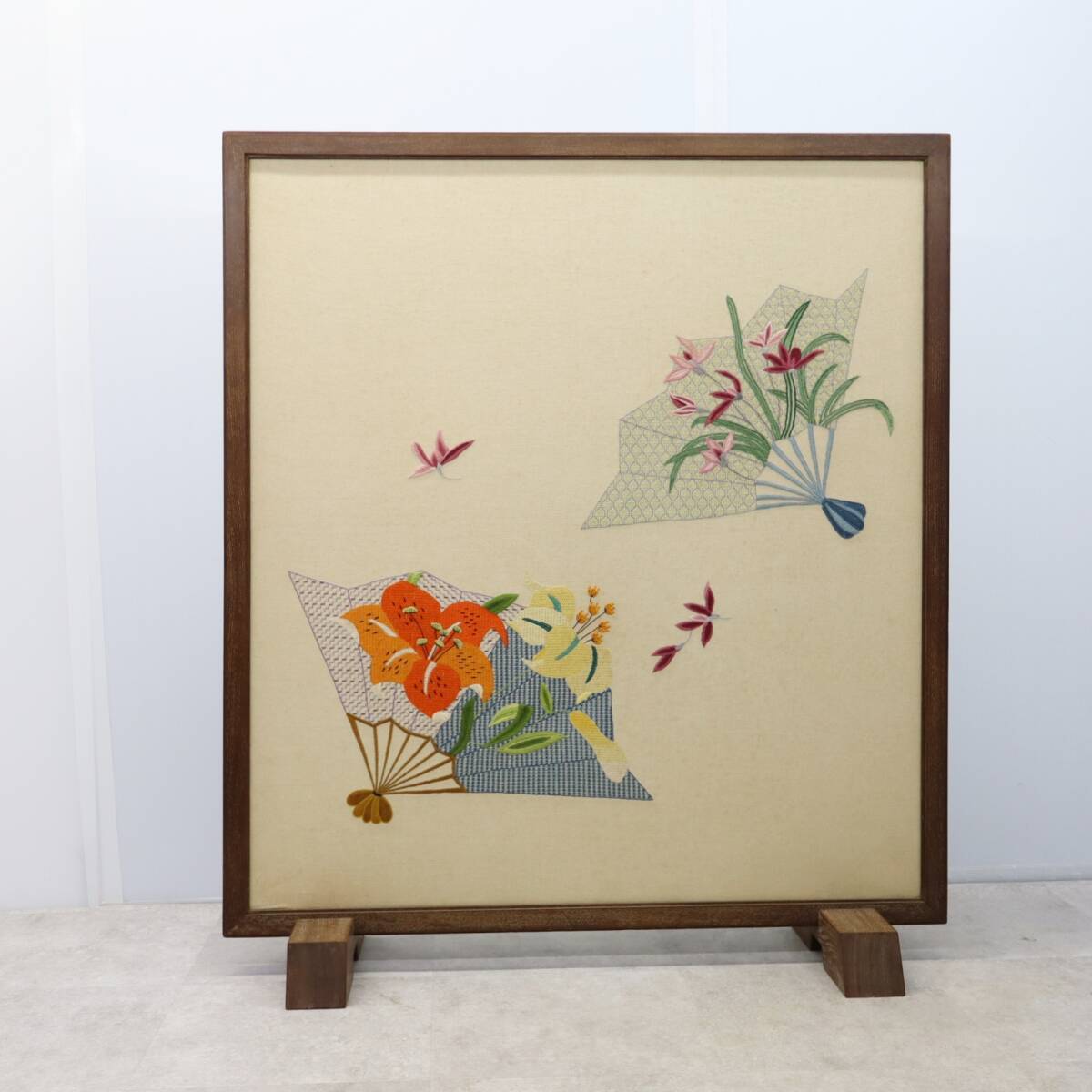 - ∀昭和レトロ/当時物! |和風 和物 衝立 刺繍| |骨董 玄関飾り 幅 91㎝×高さ 105㎝ ■P2836