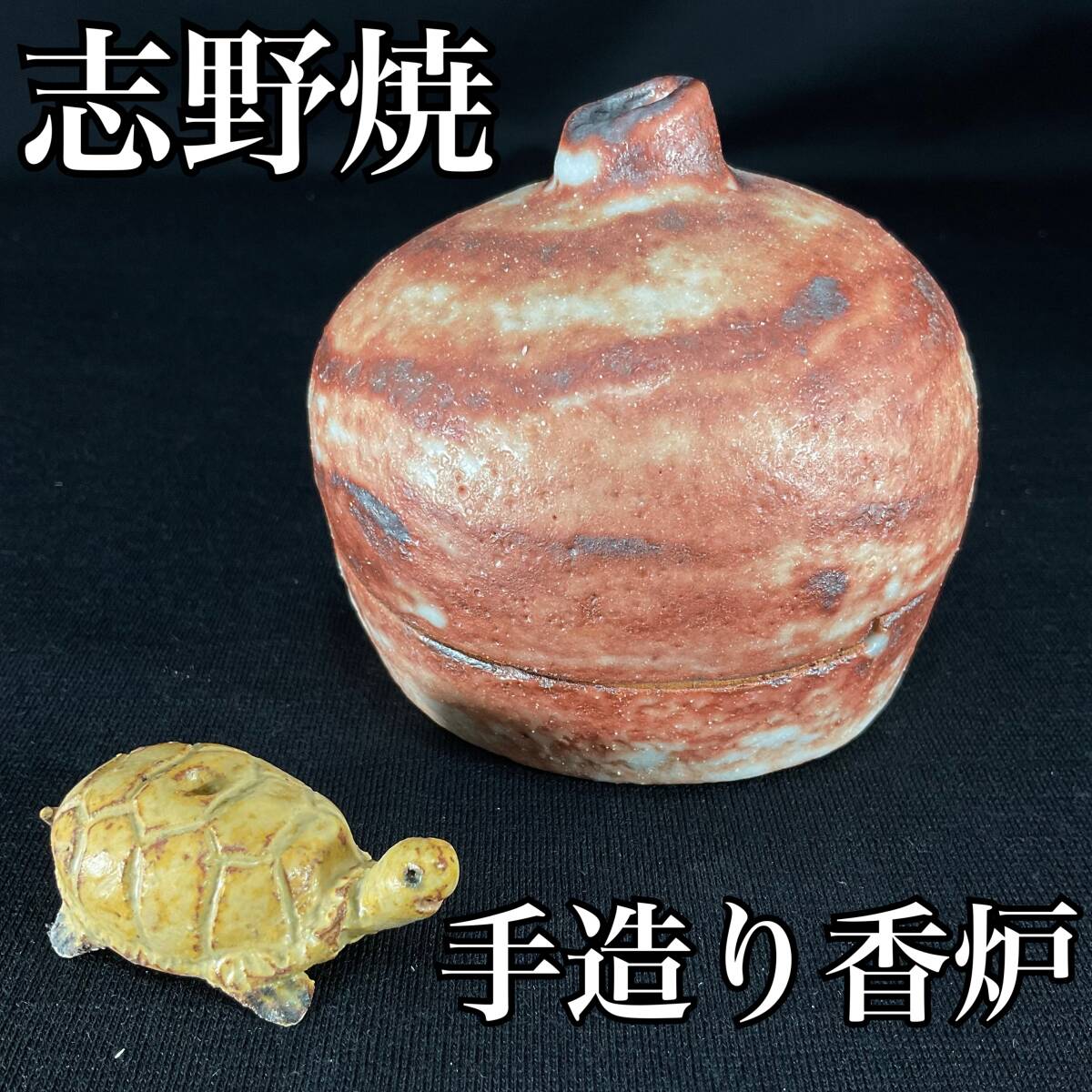 > 【未使用】美濃焼 志野焼 手造り 香炉 赤茶系 お香立て 亀 インテリア コレクション(E287)