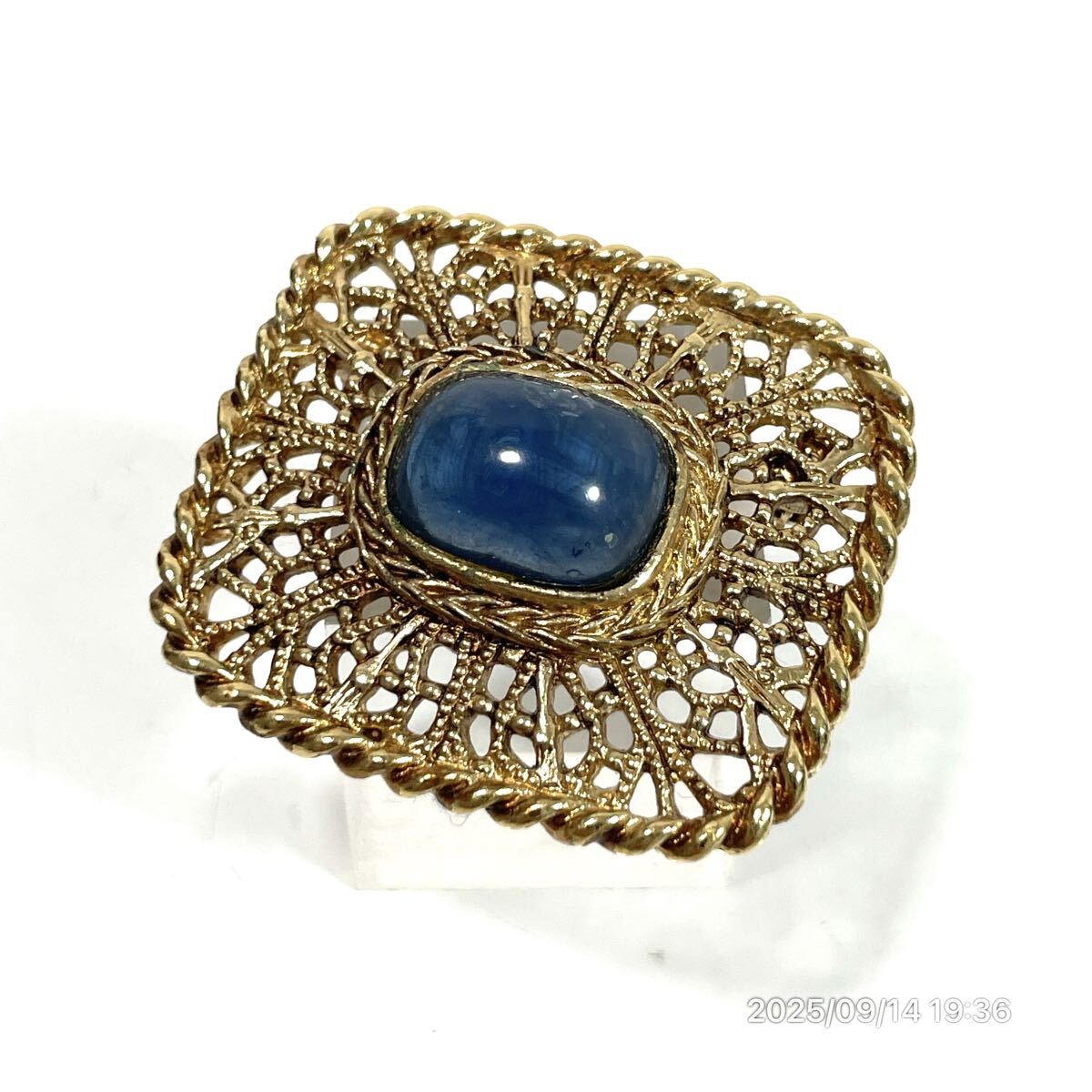 > vintage GIVENCHY ジバンシー ジバンシィ スクエア調 モダン風 色石 ラインストーン ゴールドカラーボディ ブローチ アクセサリー 装飾品