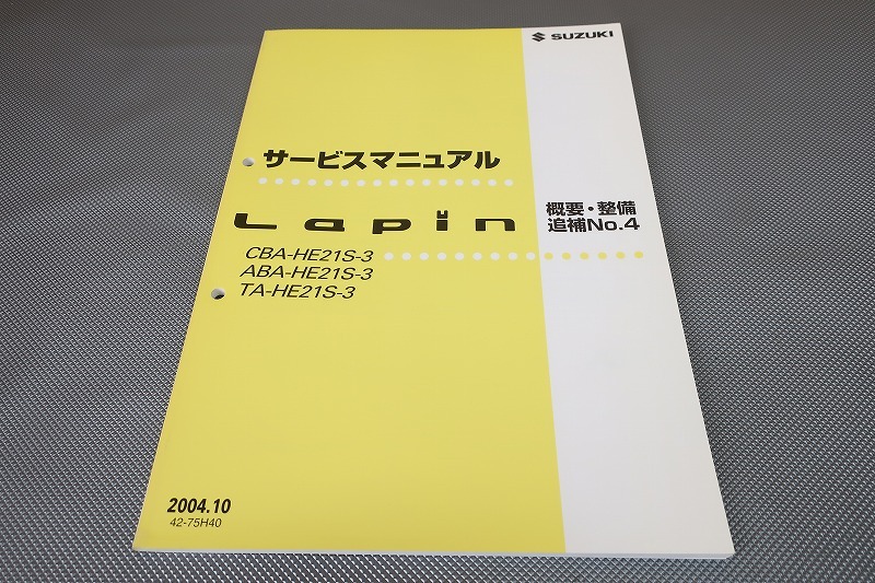 > 即決!ラパン/ターボ/サービスマニュアル/概要・整備 追補No.4/HE21S/LAPIN/(検索:カスタム/レストア/メンテナンス/整備書/修理書/K6A)201