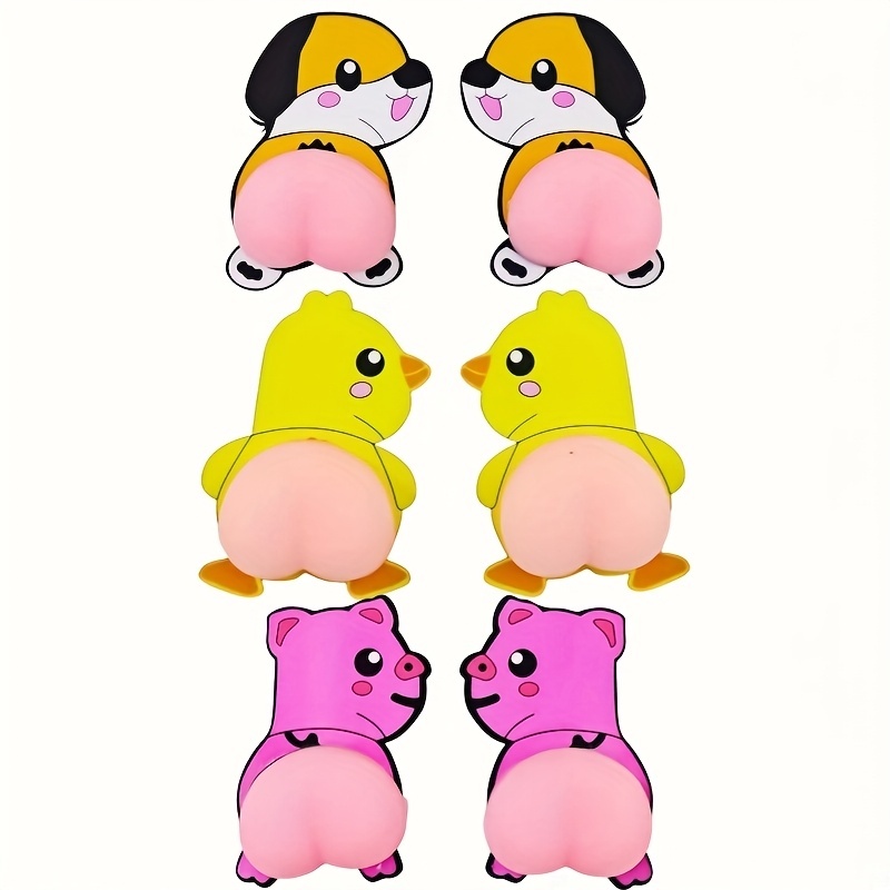 - 6個セット ステッカー ぷにぷにお尻 犬 ひよこ ブタ シール 7cm 振り向く動物 シリコン おしゃれ 貼り付け インテリア スマホ いぬ t8695