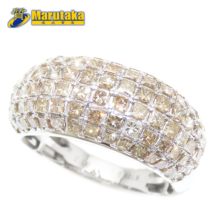 - プリンセスカット ブラウン ダイヤ リング 15号 K18WG 2.00ct WG レディース ホワイトゴールド 逸品質屋 丸高 尼崎