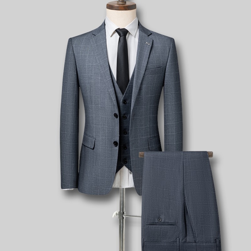 - Y6537-M 灰 新品 セットアップスーツ ウール混 格子柄 ベスト付きスーツ 3ピーススーツ ウエスト調節可能 ノーアイロン ビジネス メンズ