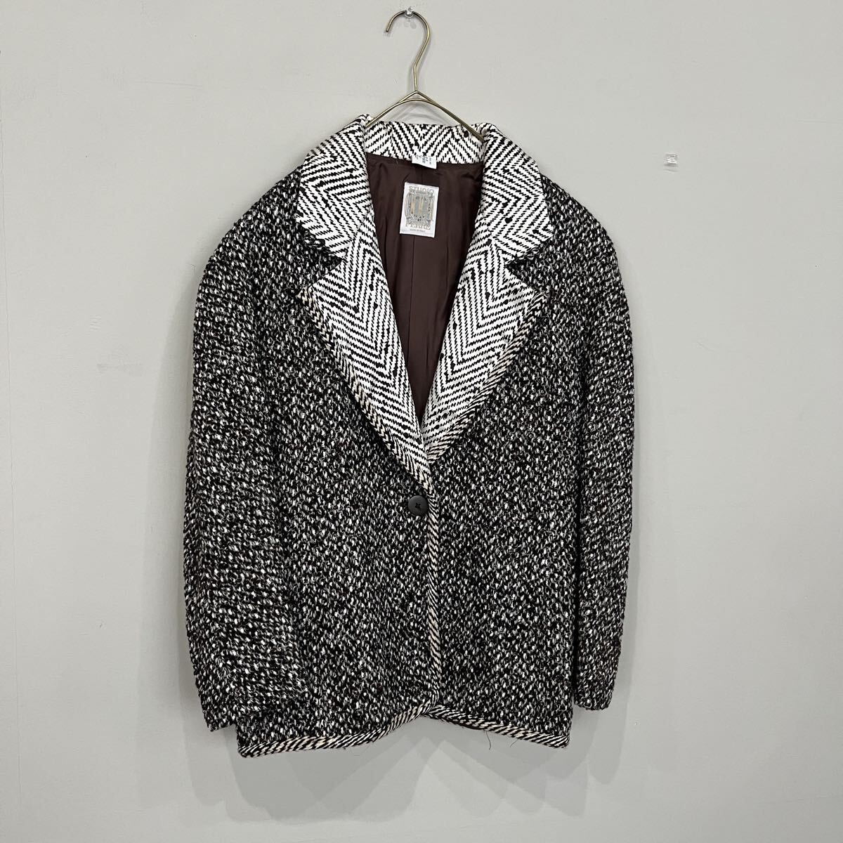 > GIANFRANCO FERRE ジャンフランコフェレ レディース イタリア製 エコツイード ツイードジャケット ドルマンスリーブ ブラウン×黒白