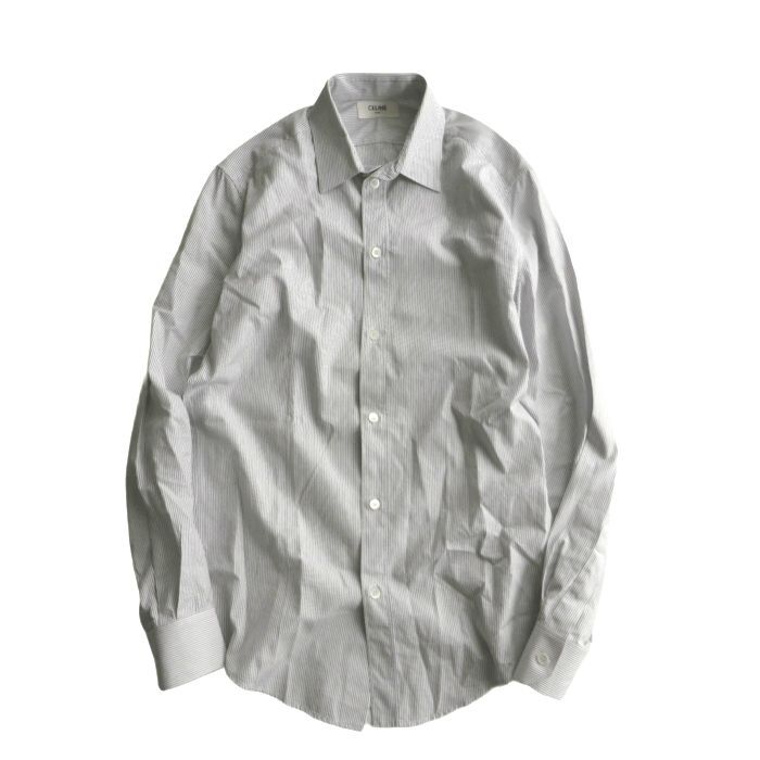 > セリーヌ (CELINE)コットン ストライプ シャツ レギュラーカラー ドレスシャツ 37 ホワイト 2C069907C ウェア(中古)