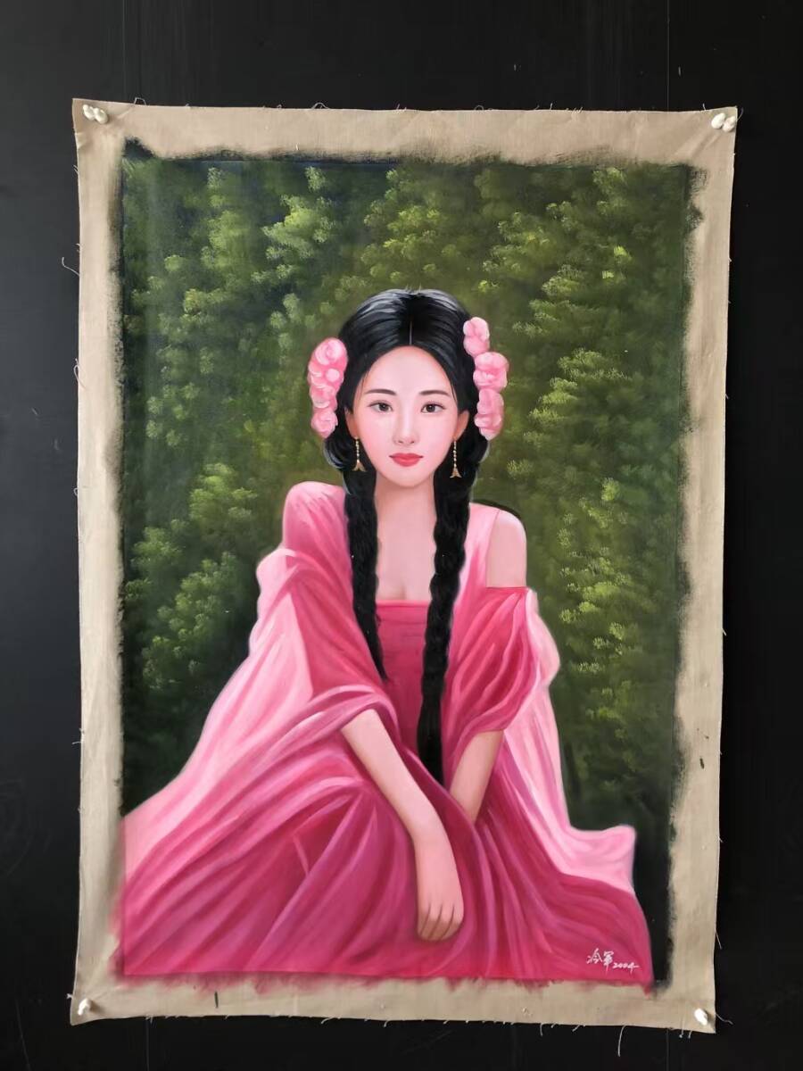 - 油彩 絵画 早期收集 y95 【冷軍】美女》美人畫 】手描き布油絵 油畫 旧藏 中国古画 純手描き画 古美術品 時代物 中国古玩 骨董品 925