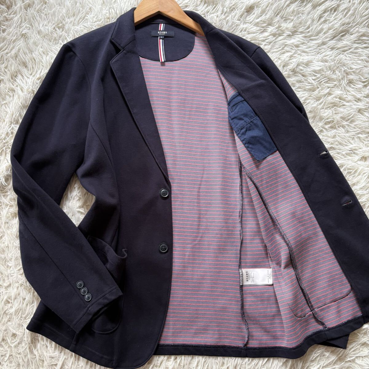 > ◎極美品/希少Lサイズ◎BEAMS HEART ビームスハート テーラードジャケット 手洗い可能 自宅洗濯 トリコロール 裏地ボーダー ネイビー 2B