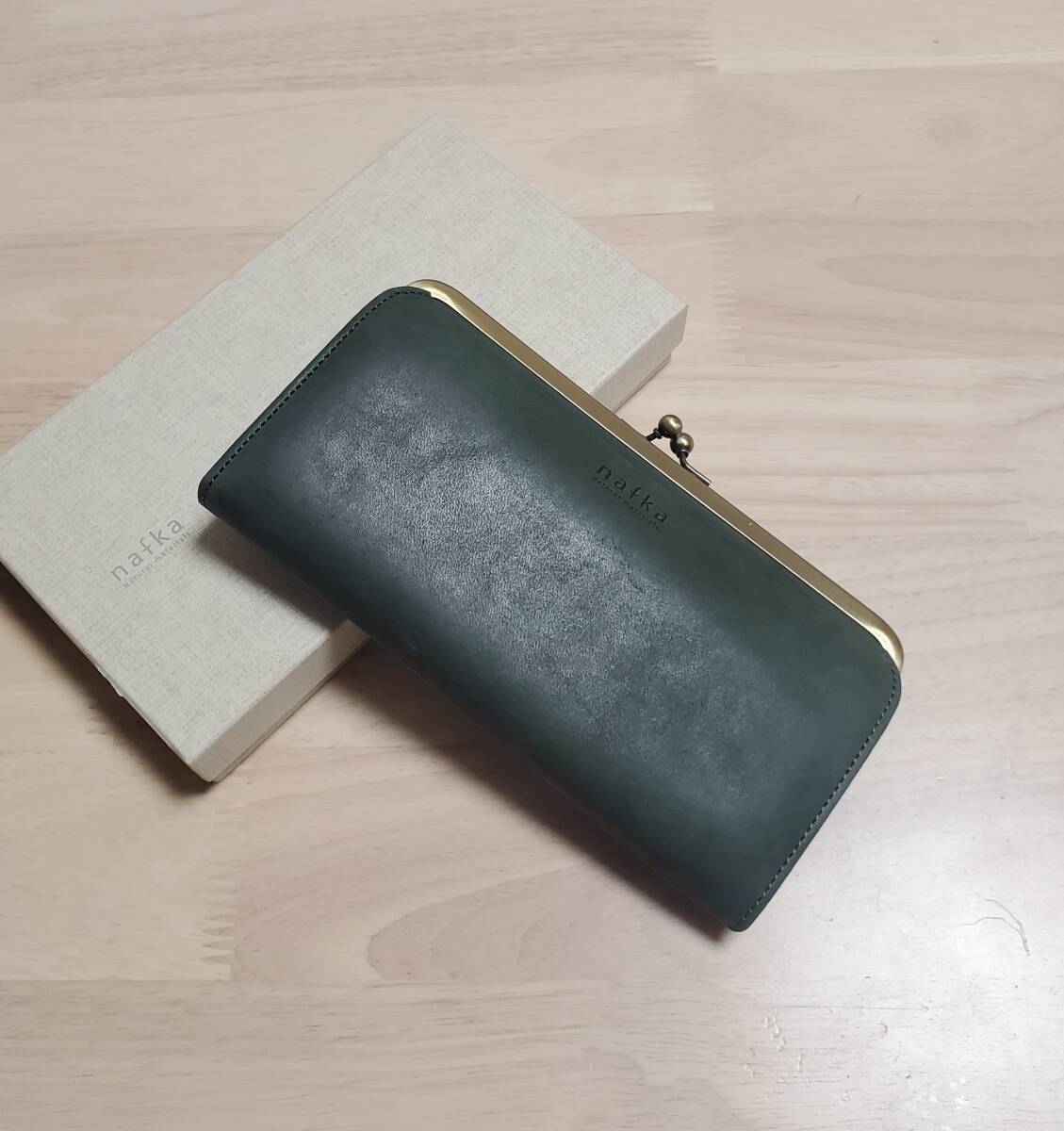 - 新品 未使用 美品 nafka がま口長財布 レディース ロングウォレット 財布 ガマ口 本革 牛革 日本製 グリーン 緑