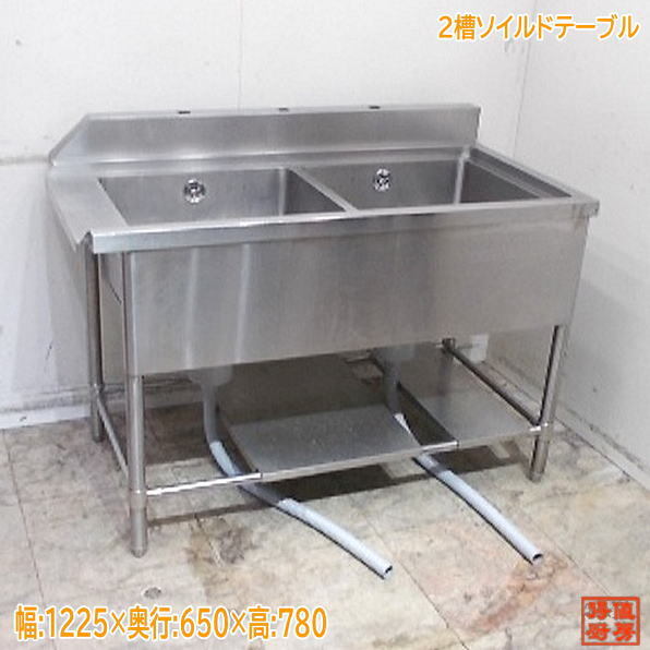 > ステンレス 2槽ソイルドテーブル 1225×650×780 食器洗浄機専用 中古厨房/24L1317Z