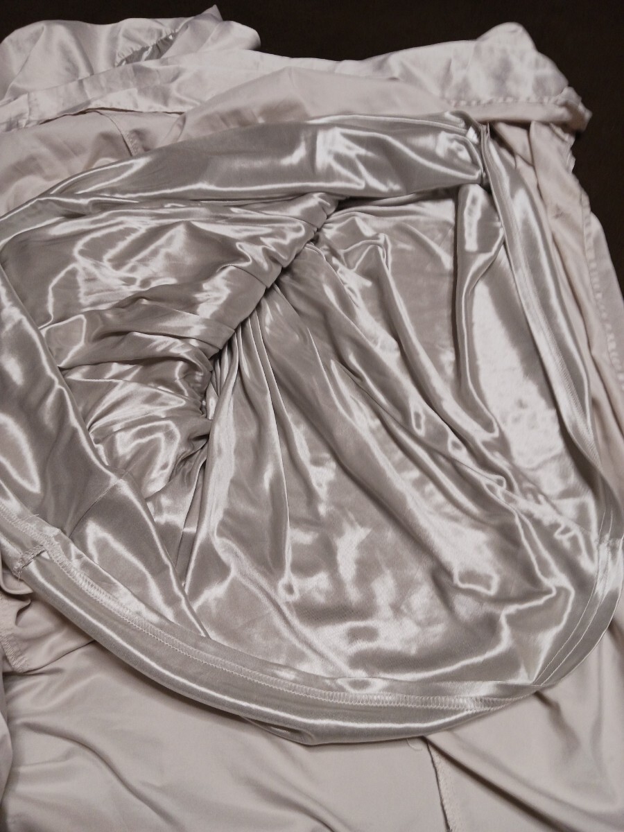 - 包みこむとろけるつるつるサテン☆mystic☆ティアードロングワンピース☆F☆シルバー☆マキシ丈☆キャミ☆普段着☆ルームウェア☆ドレス