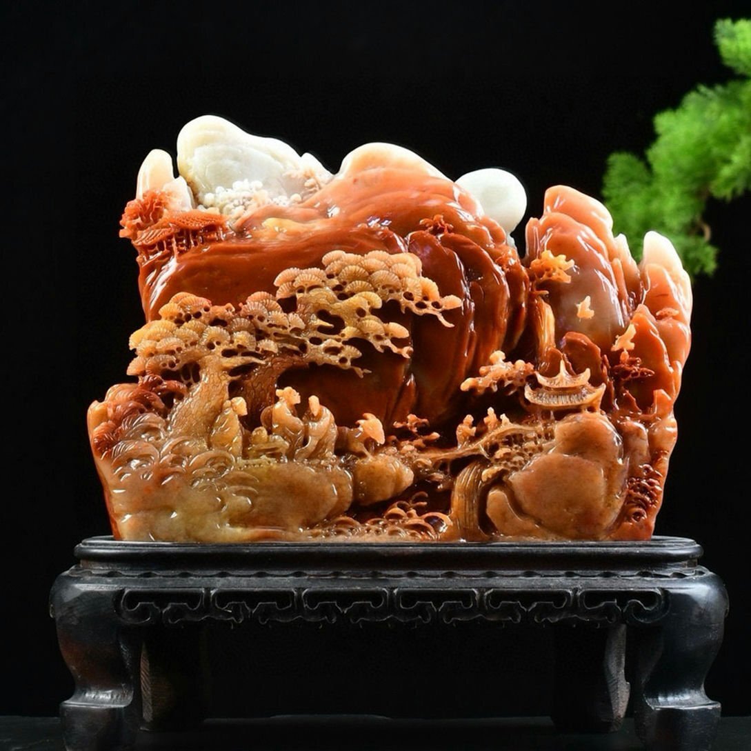 - ■観心・時代旧蔵■M551寿山石 鴻運當頭 寿山石細密彫 擺件 賞石 置物 賞物