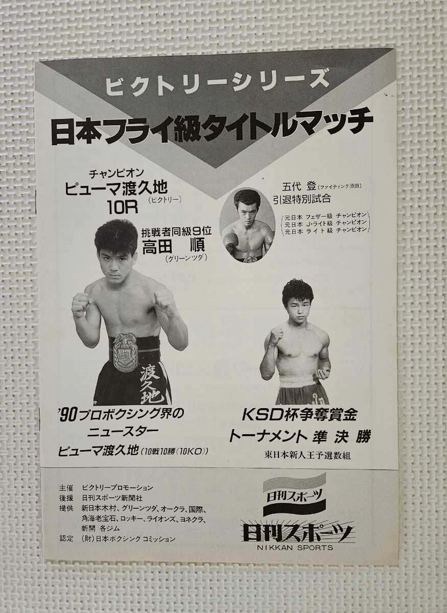 > ボクシング パンフレット / 日本フライ級タイトルマッチ ピューマ渡久地 ( 渡久地隆人 ) vs 高田順 1990.8.27