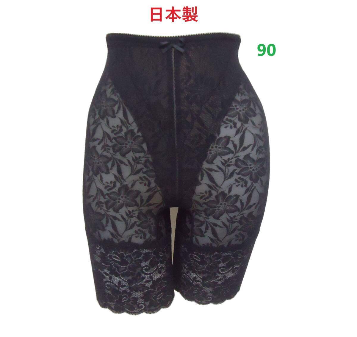 - 90・ブラック 補正下着 ハイウエストロングガードル(日本製) パワーネット使用 ジャガードメッシュ生地 新品