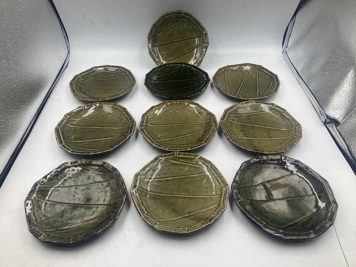 - 今回限り 魯山人 写 織部 亀甲皿 10枚 日本料理 懐石料理 平向 刺身皿 先付け 焼物皿 今回限り最後の在庫です