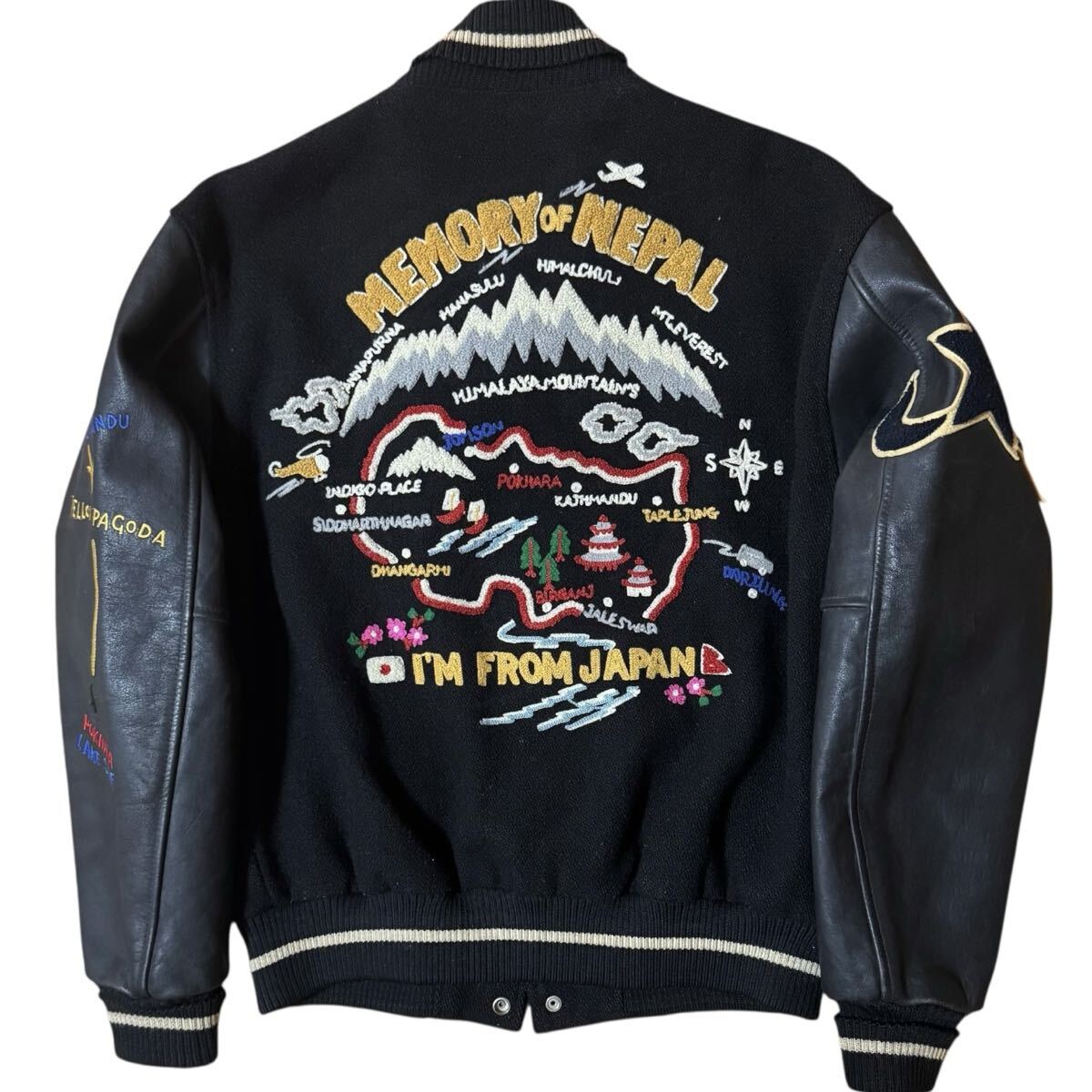 > 雰囲気抜群 HIGH!STANDARD フルデコ 袖革 スタジャン オールブラック Lサイズ リブライン