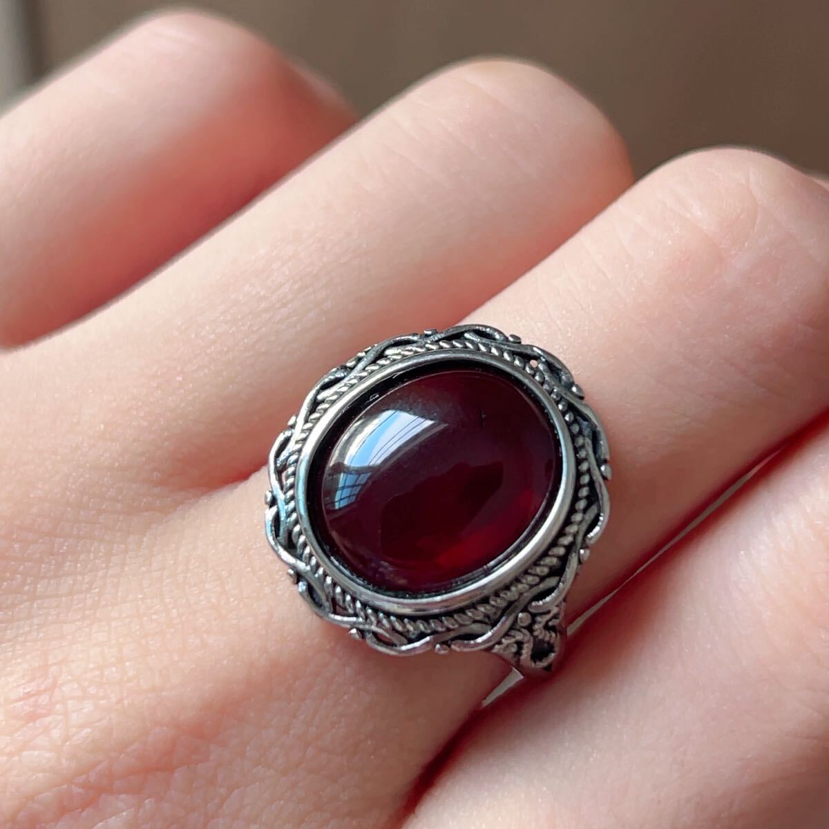 - ◇ブラッドアンバー(琥珀)◇ 男女兼用◇リング◇指輪◇フリーサイズ◇天然石◇パワーストーン◇巾着袋付き◇プレゼントにも040R9273