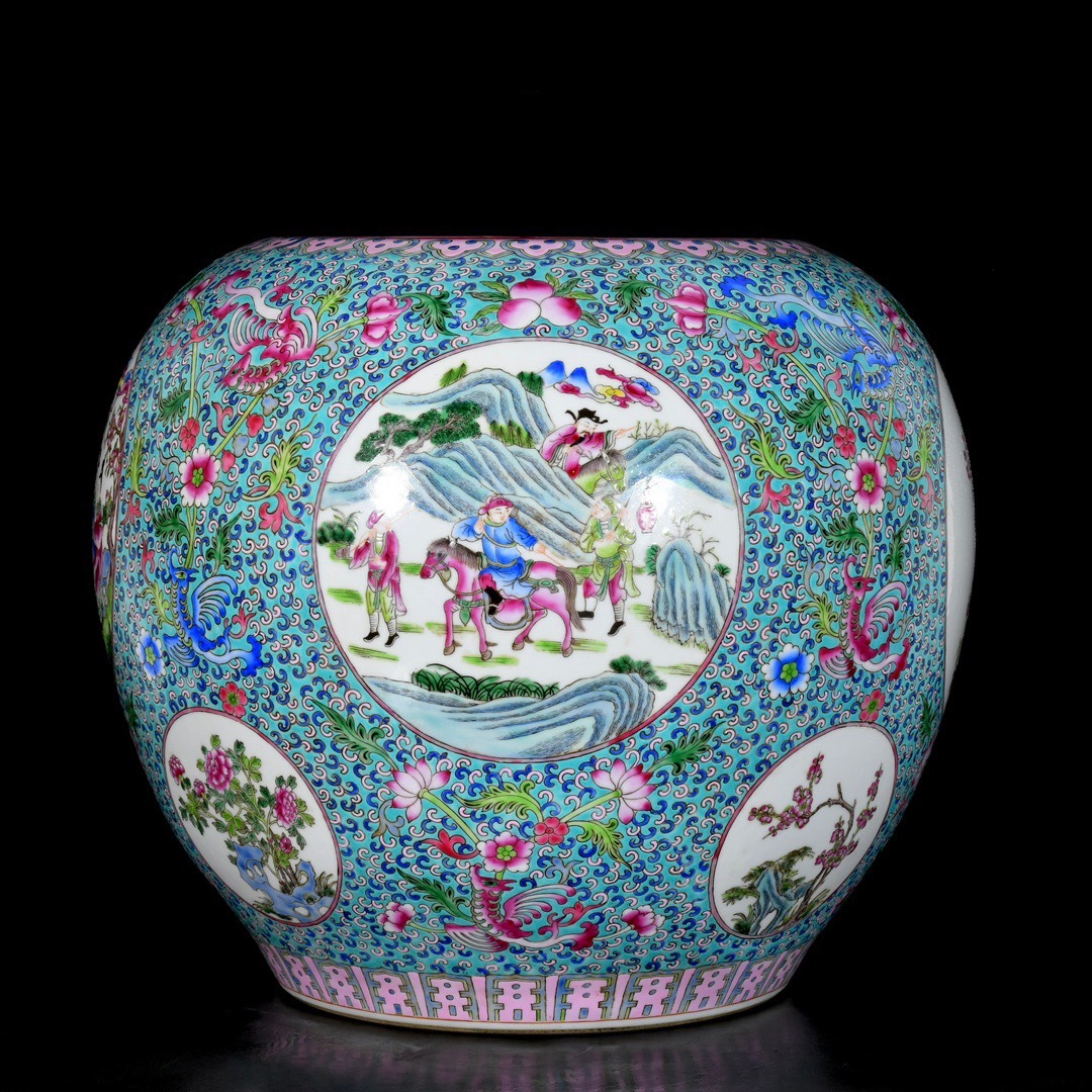- 9+GV9771「東洋美術」 中国骨董 人間国宝 磁器製品【窓物語付きエナメルアップルジャー】 旧物 孤品 珍品 陶磁器 収蔵価値が高い