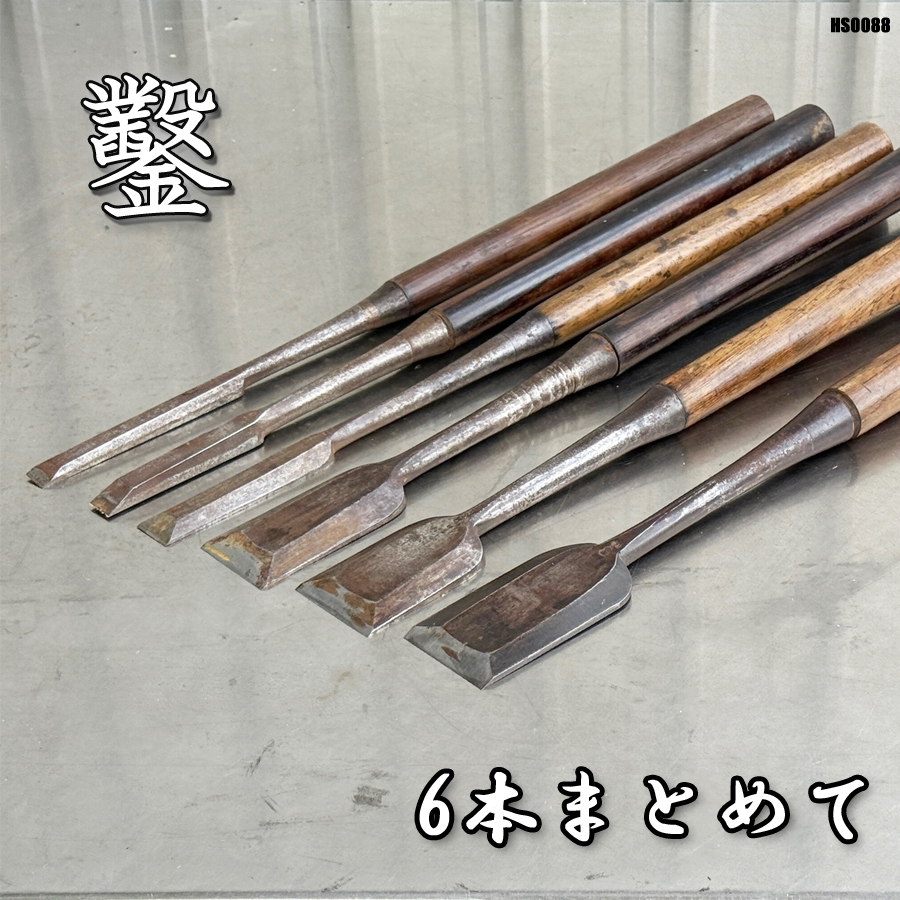 - 突き鑿 6本セット 追い入れ鑿 左光子 千成 黒檀柄含む のみ ノミ 大工道具 ハンドツール ◇HS-0088