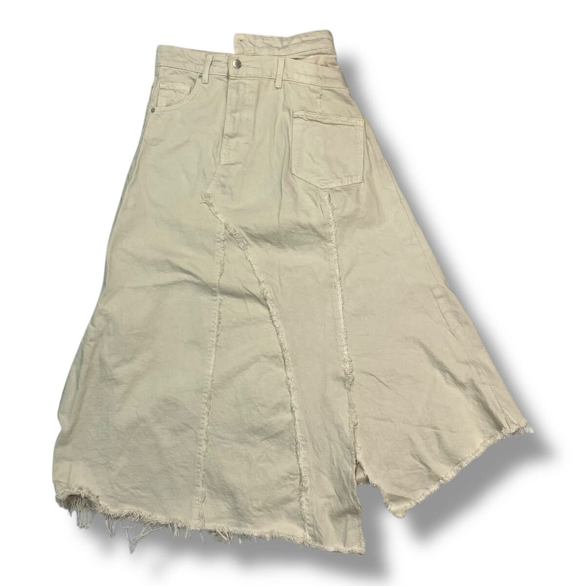 - (TS0927) ZARA ザラ スカート 切りっぱなし ロングスカート アイボリー S