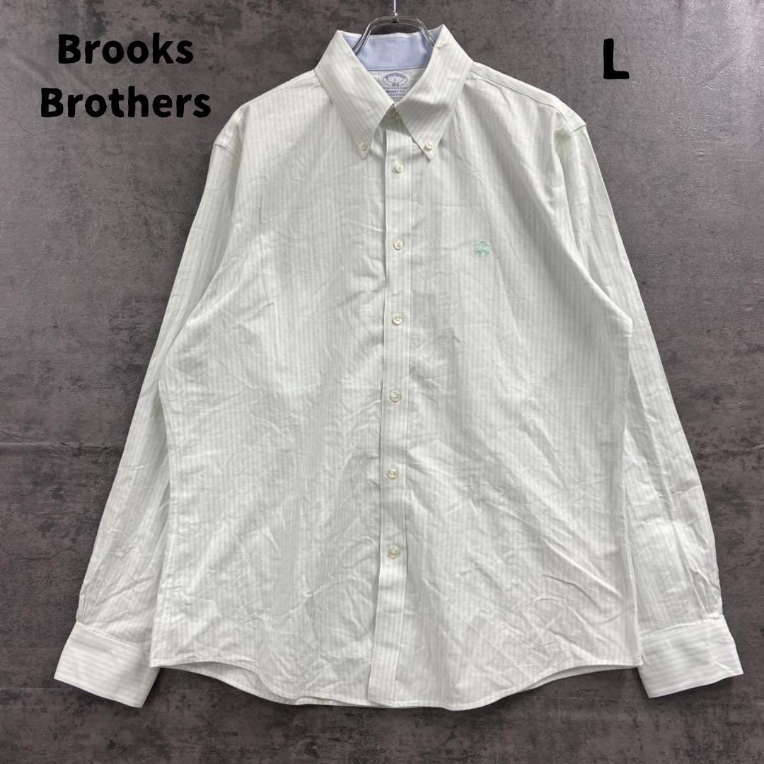 - ブルックスブラザーズ ボタンダウンシャツ グリーンストライプ L【5754】