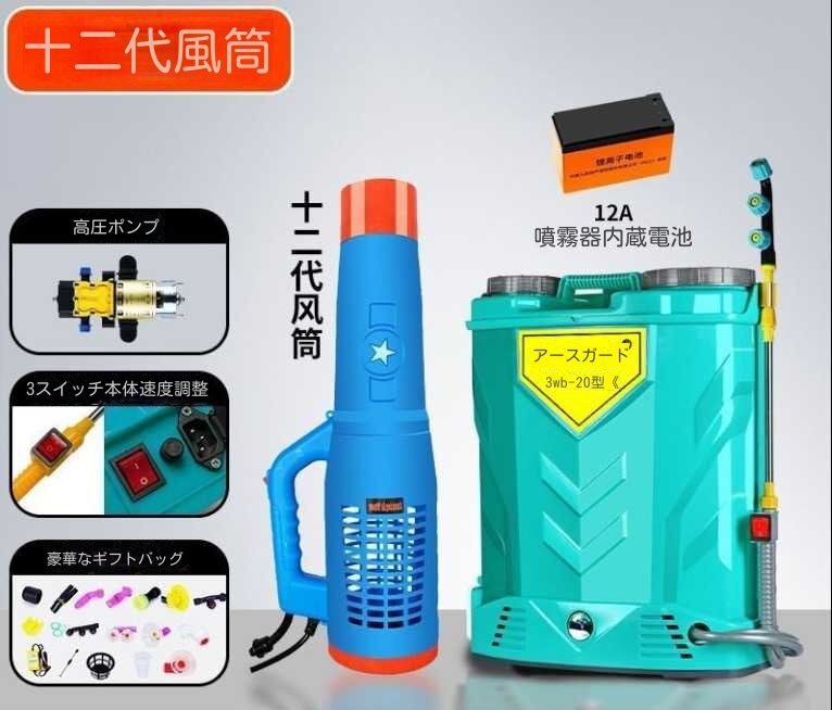 - 電動背負い式20L噴霧器 充電式 ノズル 農薬 除草剤 散布 液体肥料 水やりガーデニング 消毒 害虫駆除 洗車(A200)
