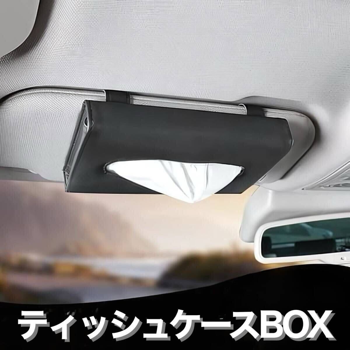 - 車内用 ティッシュケースBOX 高級感レザー調 カバー ブラック 取付簡単 サンバイザー 便利グッズ 場所取らず PUレザー 吊り下げ
