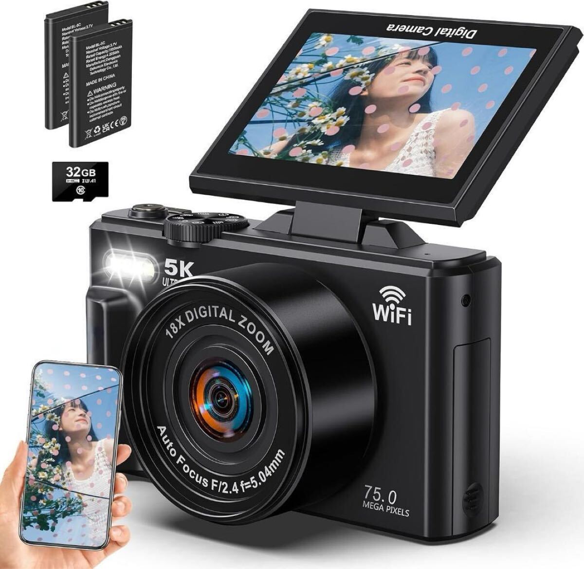 - 5K録画 デジタルカメラ スマホに送れる デジカメ 7500万画素 運動会