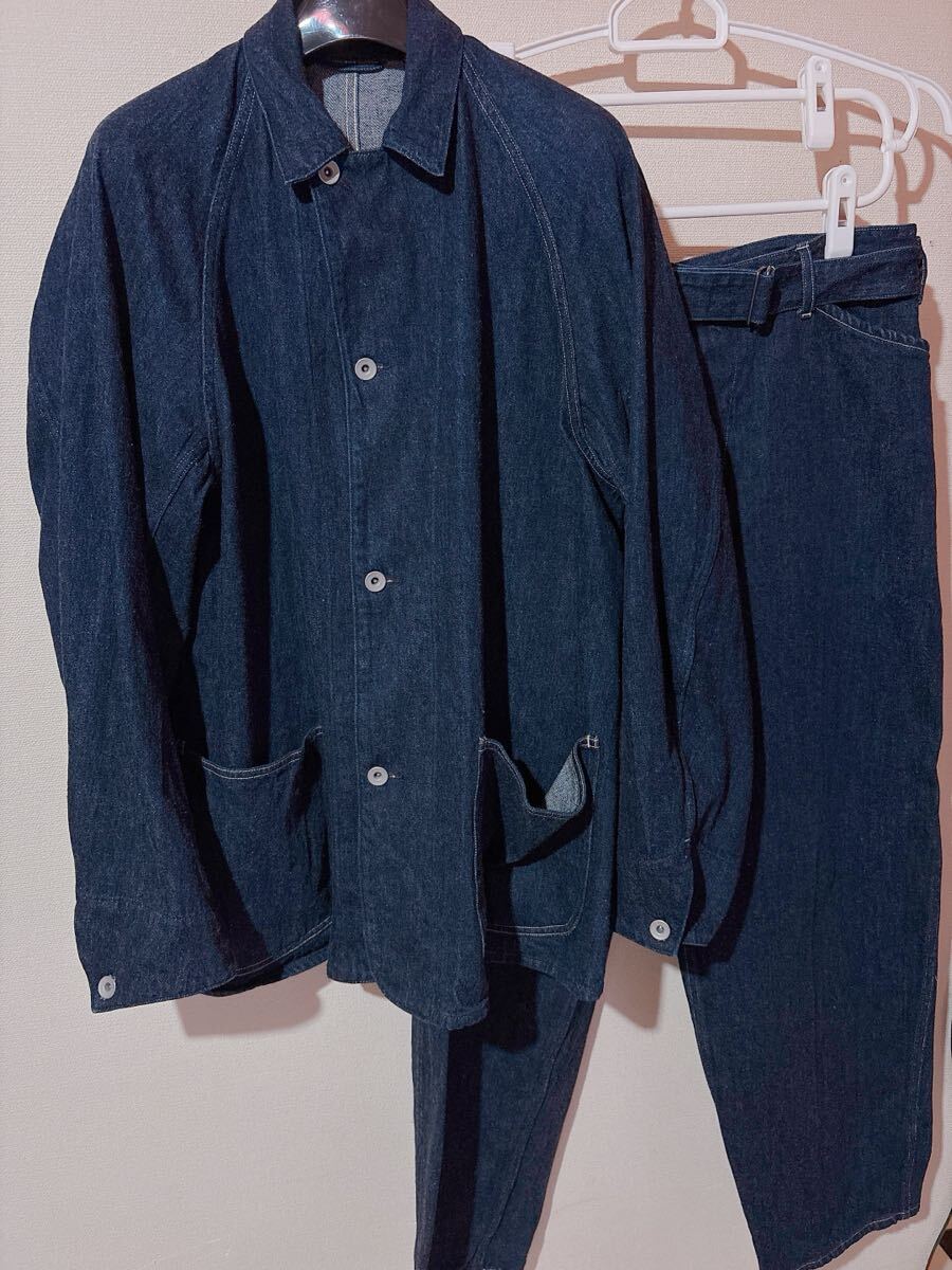 - comoli コモリ ベルテッドパンツ ワークジャケット デニムセットアップ 上下 インディゴ A03-01002 A03-03001 ジャケット パンツ