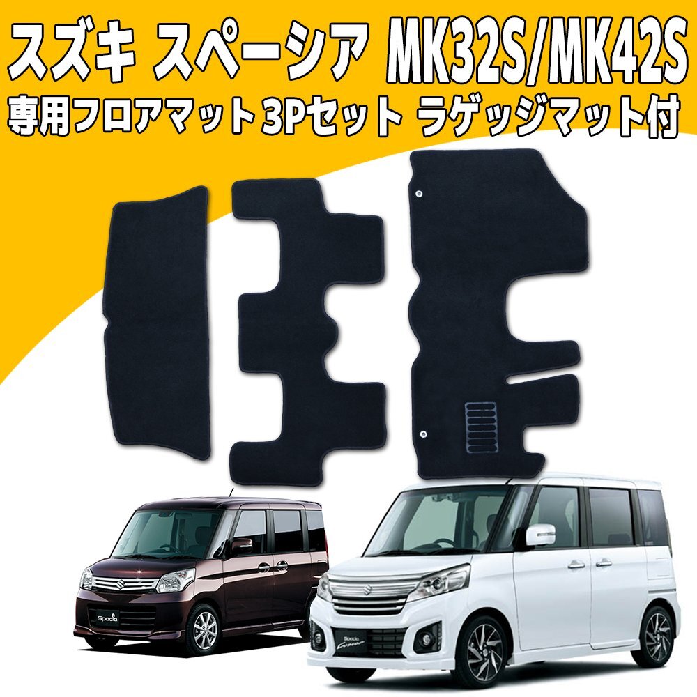 > フロアマット MK32S/MK42S スズキ スペーシア/スペーシアカスタム/スペーシアカスタムZ/マツダ フレアワゴン 3点set ラゲッジマット付