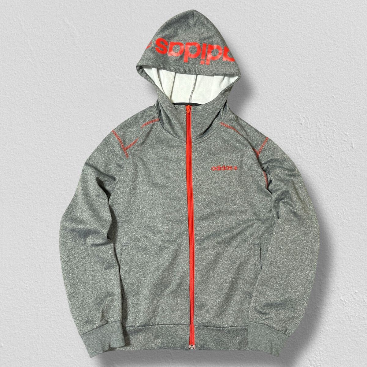 - adidas NEO 裏起毛 長袖フーディージップアップパーカー グレー×レッド M ●洗濯プレス済● アディダス パーカー ジャージ 古着/677