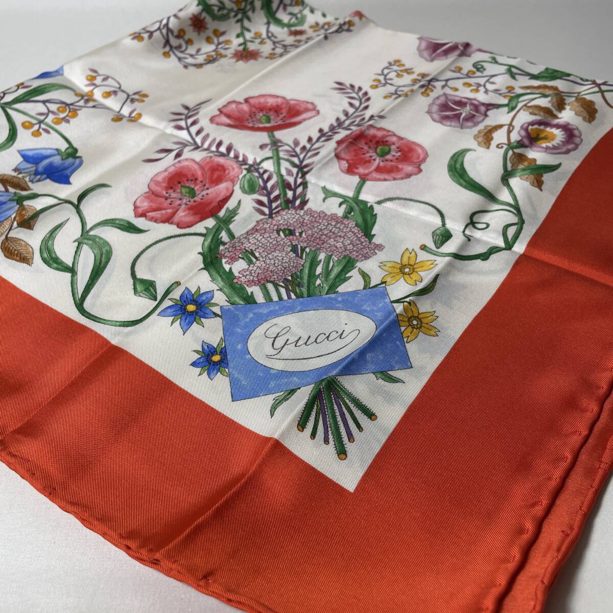 - 79B52|美品|グッチ スカーフ シルク オレンジ 花柄