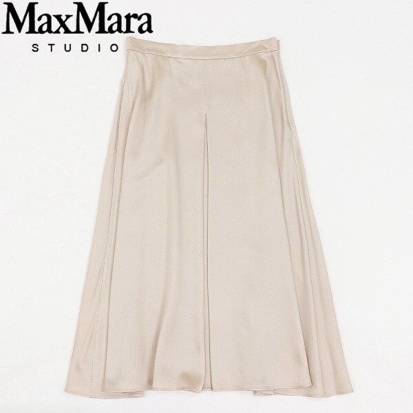 - 【HA509】◆Max Mara STUDIO マックスマーラ サテン フロントタック フレア スカート ライトベージュ 44
