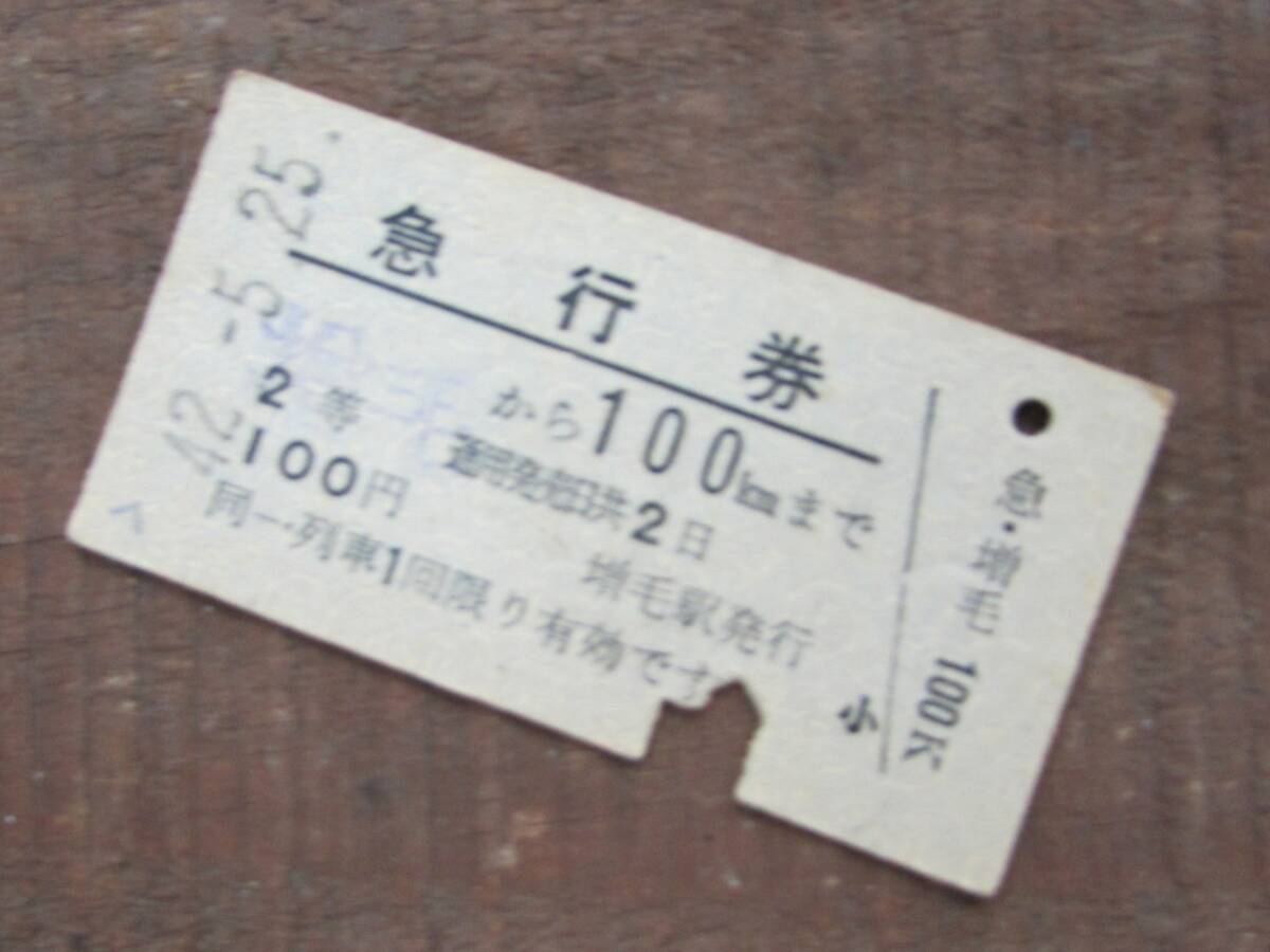 > 切符 A型硬券 急行券 2等 昭和42年 増毛~100kmまで 増毛駅発行 100円 国鉄 北海道 レトロ 26