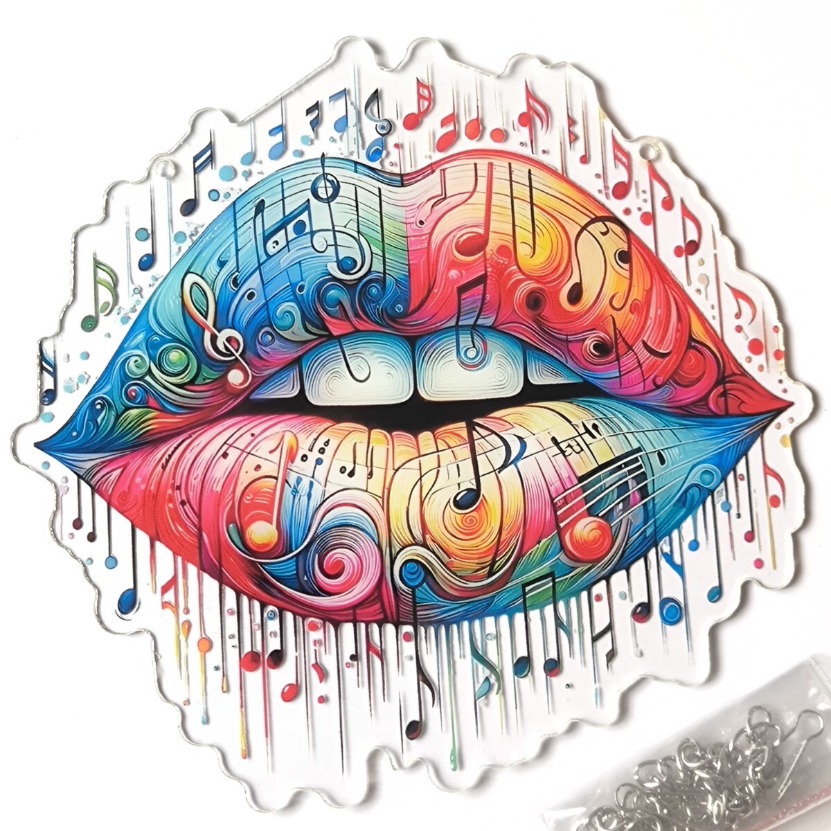 - 【唇と音符・音楽・ カラフル】アクリルプレート 飾り サンキャッチャー チェーン付き オブジェ お洒落 壁や窓辺の飾りに◎