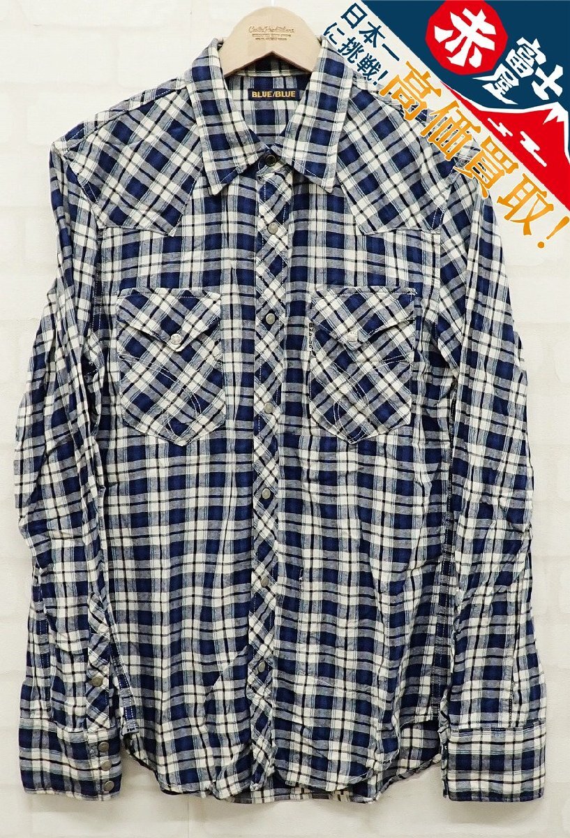 > 9T6076/BLUE BLUE レーヨンリネンチェックウエスタンシャツ ブルーブルー