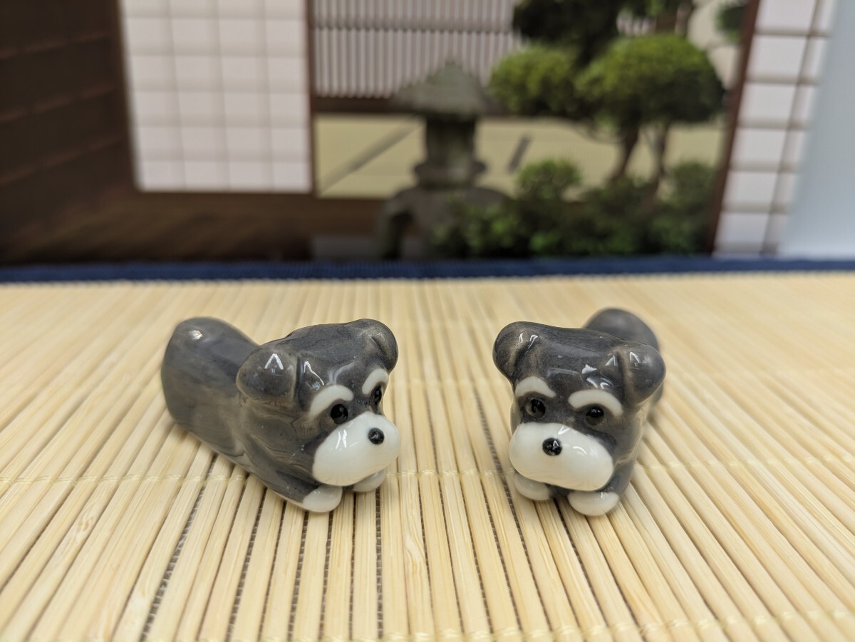 - 陶器製 箸置き 2個セット 犬 シュナウザー 置物 かわいい犬の箸置き