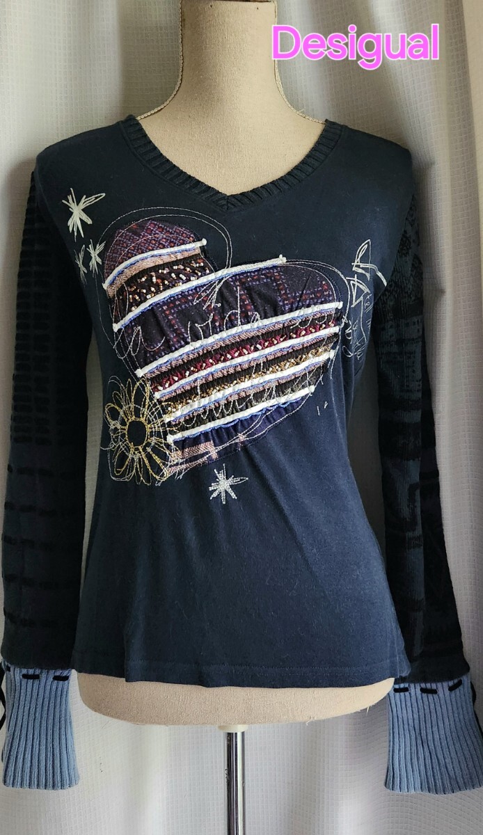 - 大変美品 デシグアル 秋冬 長袖ブラウス カットソー ネイビー