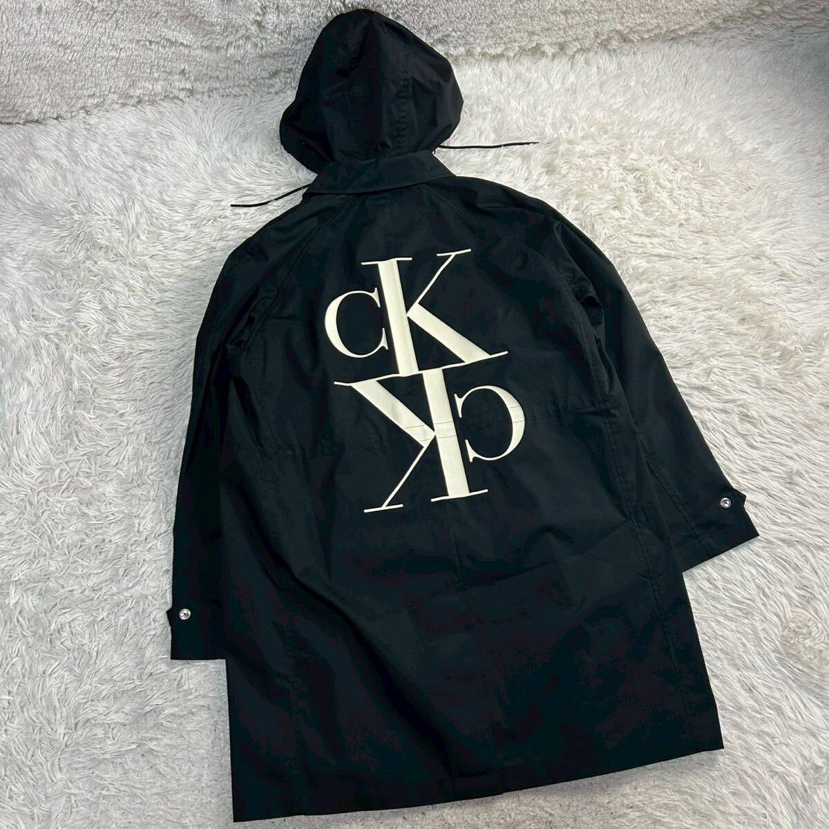 > ●極美品/希少デザイン CALVIN KLEIN JEANS カルバンクラインジーンズ 2wayコート フード収納 バックロゴ 刻印ジップ 撥水 機能性 比翼 M