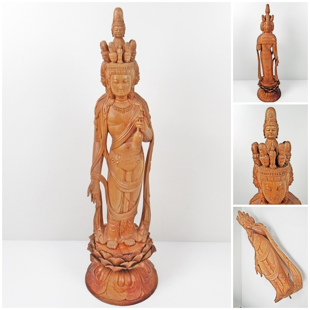 - ◆[A33]木彫 仏像 十一面観音像 高さ約60cm 仏像立体 仏教美術
