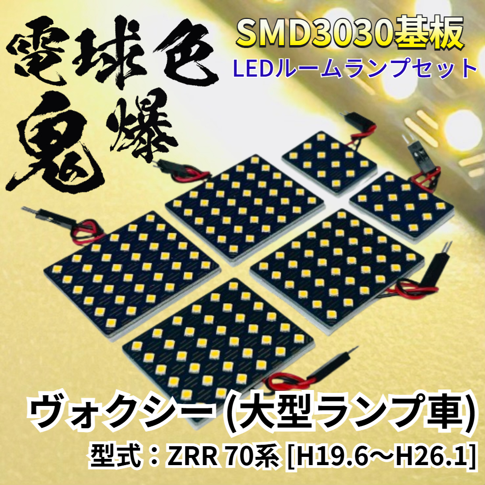 - 【電球色】ヴォクシー (大型ランプ車) ZRR 70 70系 鬼爆基板 3030SMD LED ルームランプ セット 車内灯 室内灯 パーツ アクセサリ 読書灯
