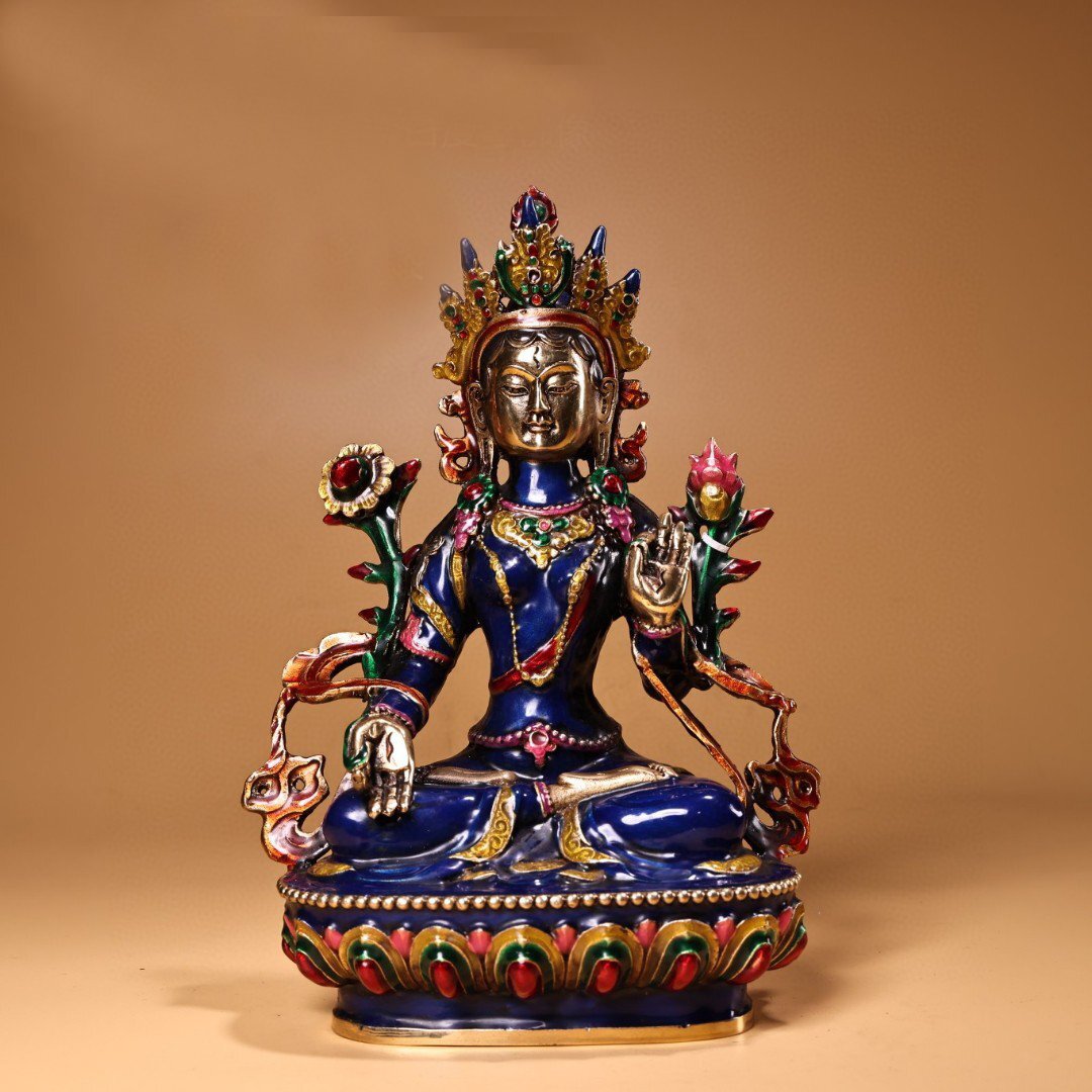 - 蔵伝純銅 景泰藍エナメル彩 白度母仏像 仏像 仏教 美術 置物 収蔵 コレクション