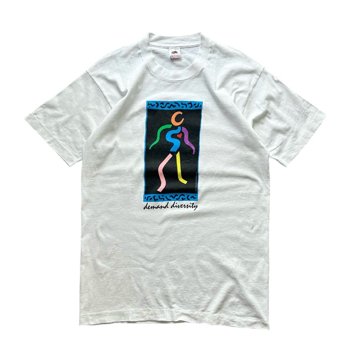 > USA製 90’s FRUIT OF THE LOOM フルーツオブザルーム Tシャツ L ホワイト ヴィンテージ シングルステッチ アート プリント 1991年製
