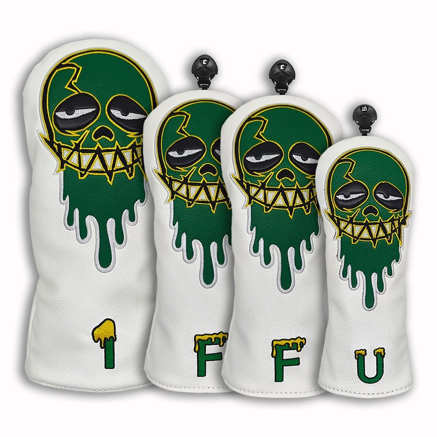 - 送料無料 4点セット ゴルフ ヘッドカバー 3.5共通FW DW UT ドクロ 骸骨 パター ドライバー gf320