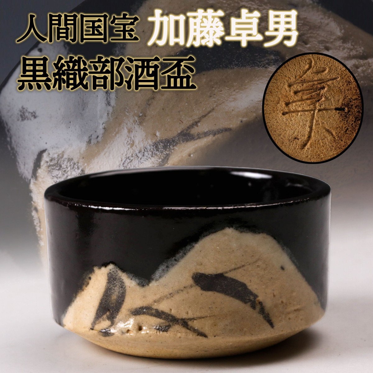 【佳香】人間国宝 加藤卓男 本人作 黒織部酒盃 本物保証