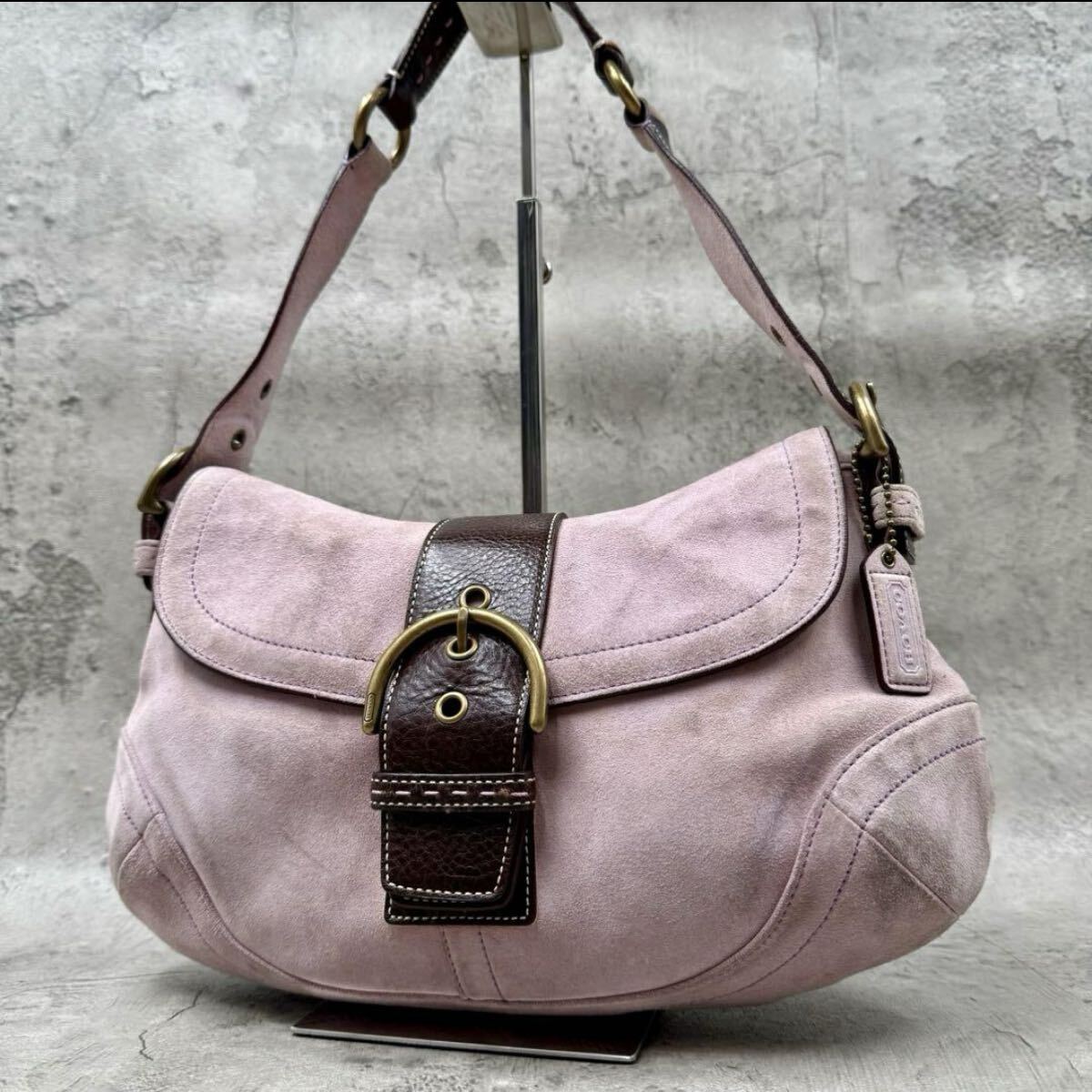 > 希少色■ COACH コーチ 9688 ソーホー ショルダーバッグ フラップ ホーボー Y2K 肩掛け レディース スエード レザー パープル ブラウン