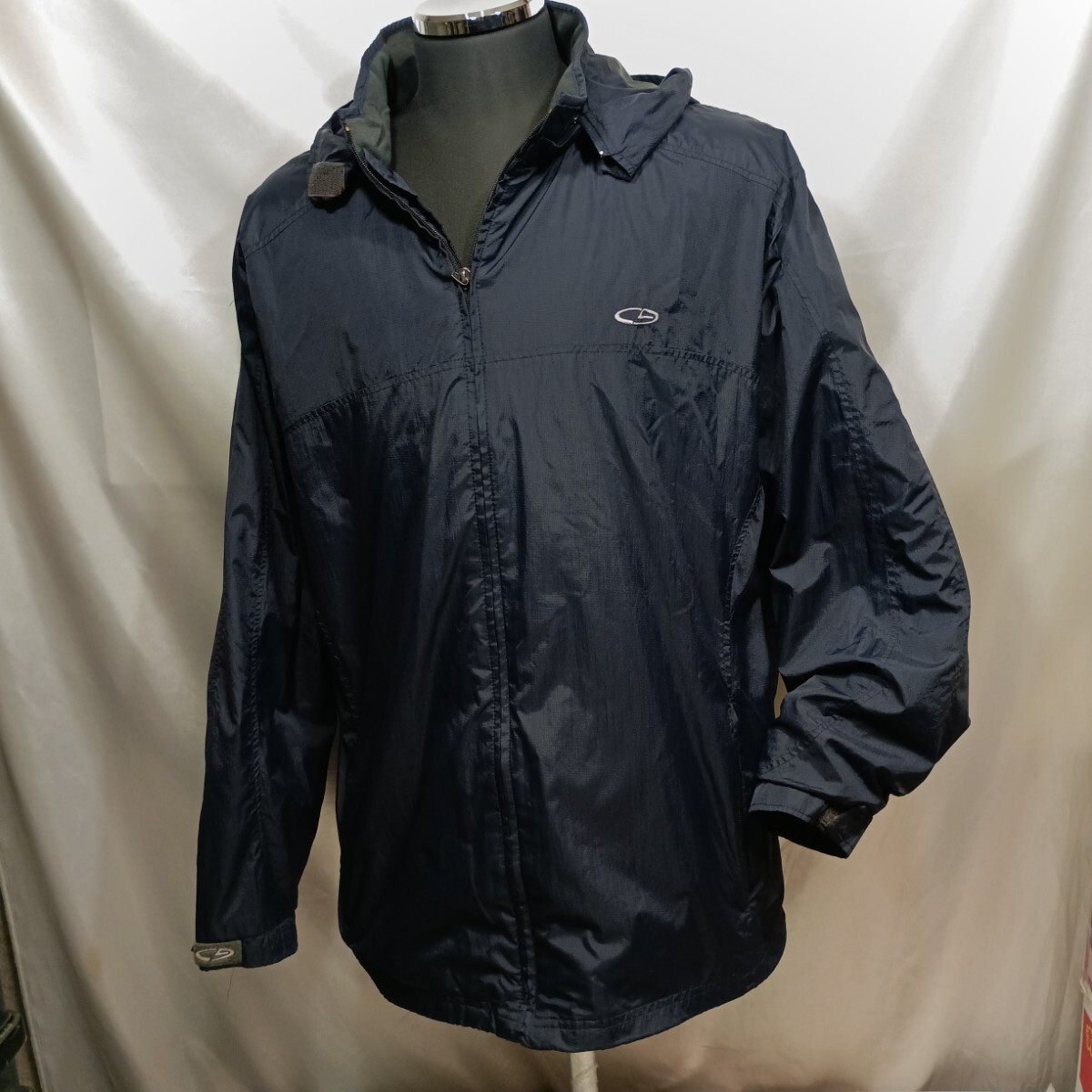 > zaa-144♪USユーズド★(チャンピオン) Champion フード ジャケット ナイロンジャンパー★ネイビーUS-XL(日本2XLサイズ)