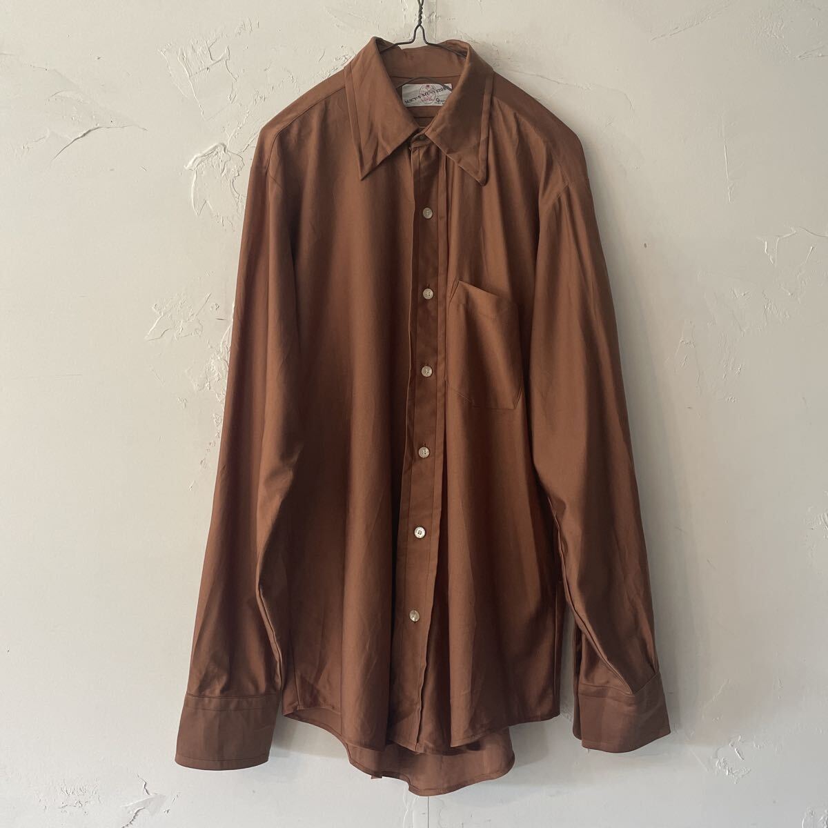 > ビンテージ ナイロン100% ブラウン 長袖シャツ 5 ヴィンテージ 茶色 無地 メンズ レディース アメリカ古着 輸入古着
