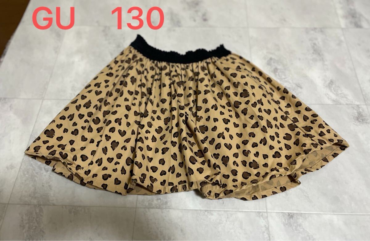 > 美品!GU ヒョウ柄 スカート 122-317625(93-01) ベージュ 130 130CM ハート