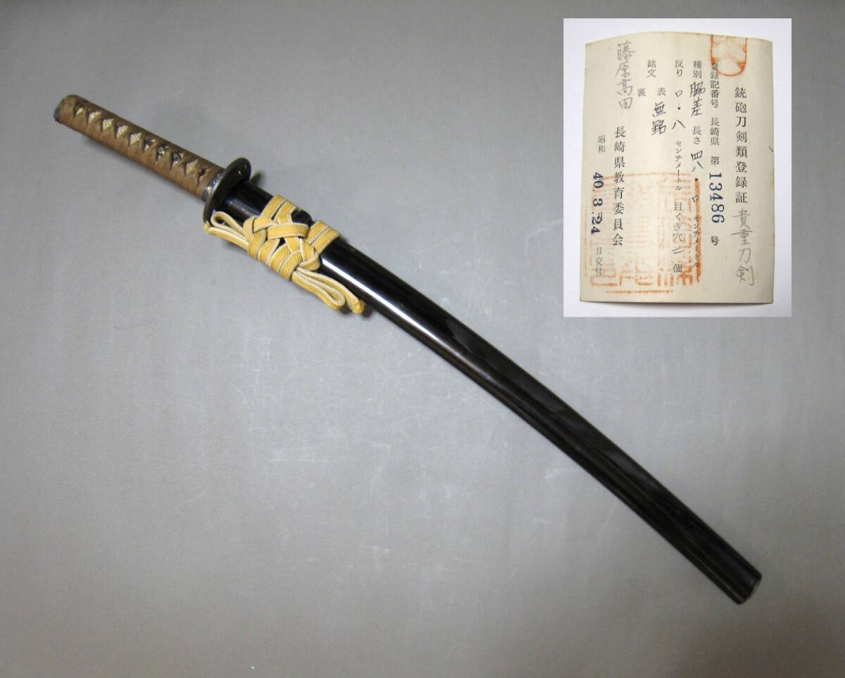 - 日本刀 脇差 無銘 48cm 貴重刀剣 美濃金具 銃砲刀剣類登録証 認定書 委託