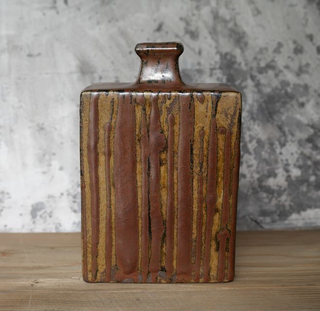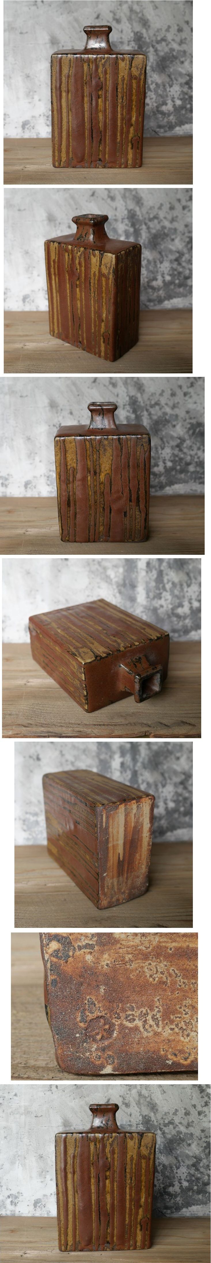 - 益子焼名工 木村一郎 柿釉扁壷 花瓶 徳利 モダニズム
